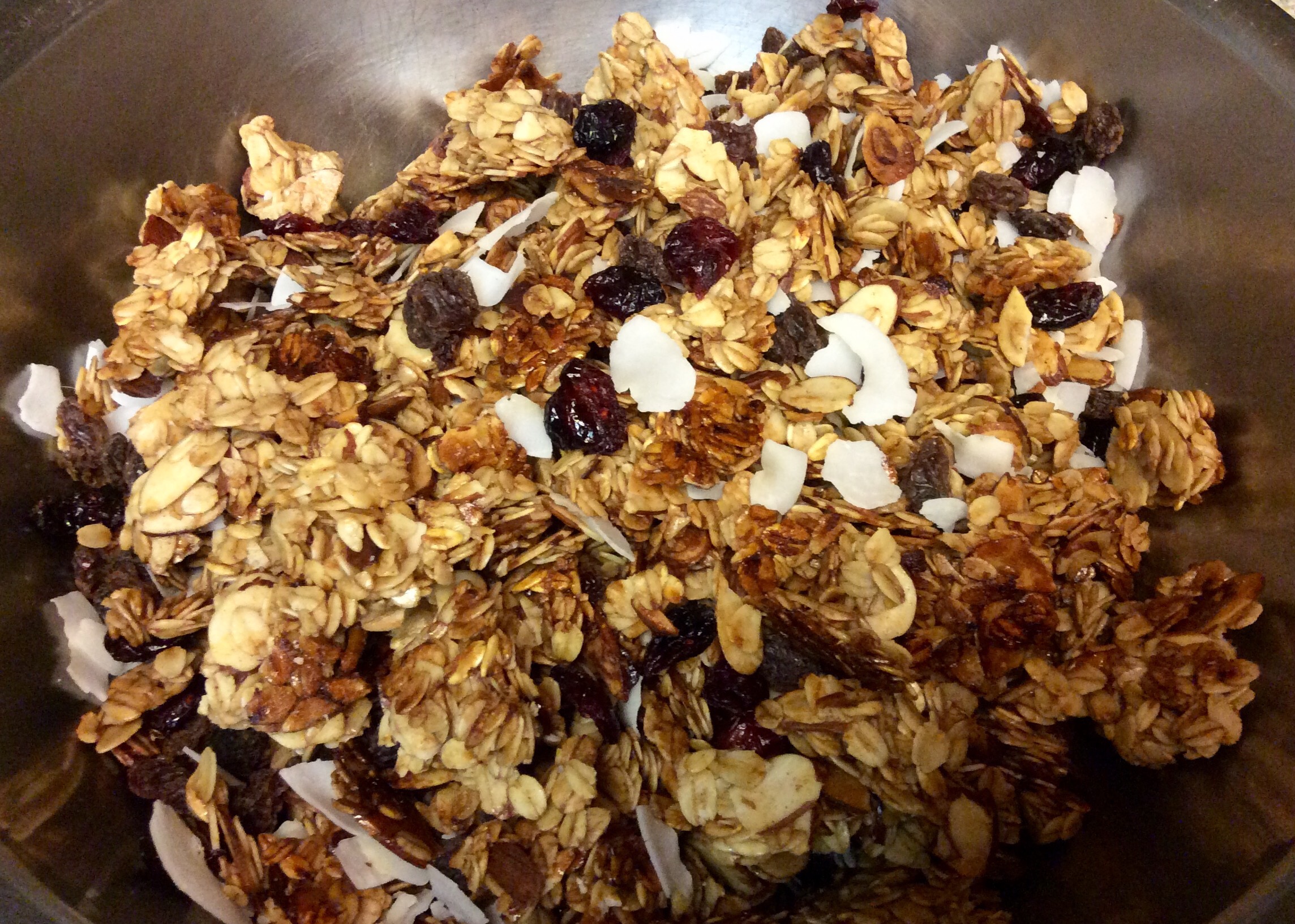 For this recipe I used cranberries and raisins, but you can add whatever dried fruit you like. Seeds are also a welcome addition.